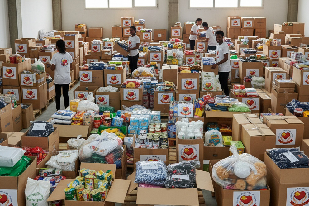 Distribution de repas et paniers alimentaires aux familles dans le besoin.